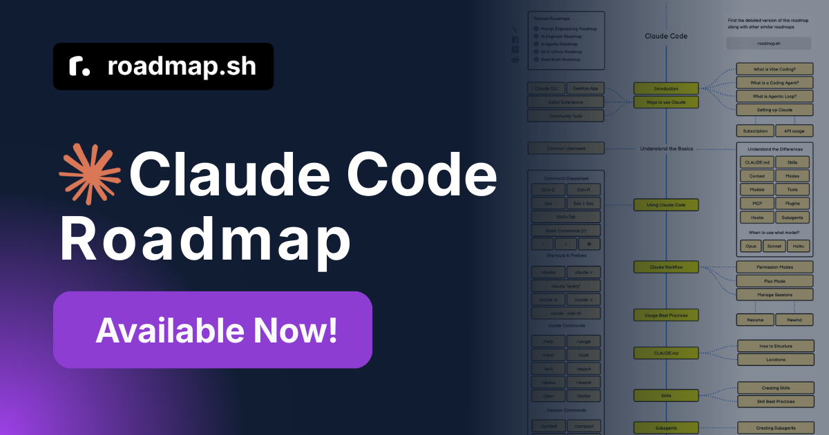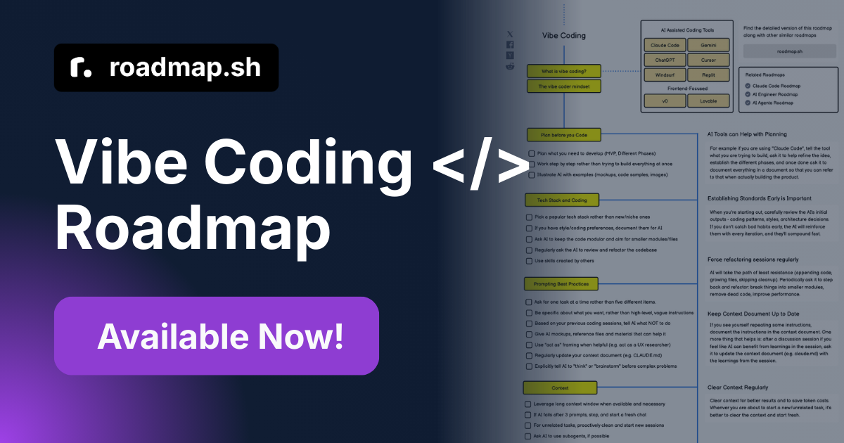 We're thrilled to launch the Claude Code and Vibe Coding Roadmaps to reflect how AI is becoming a core part of modern development workflows